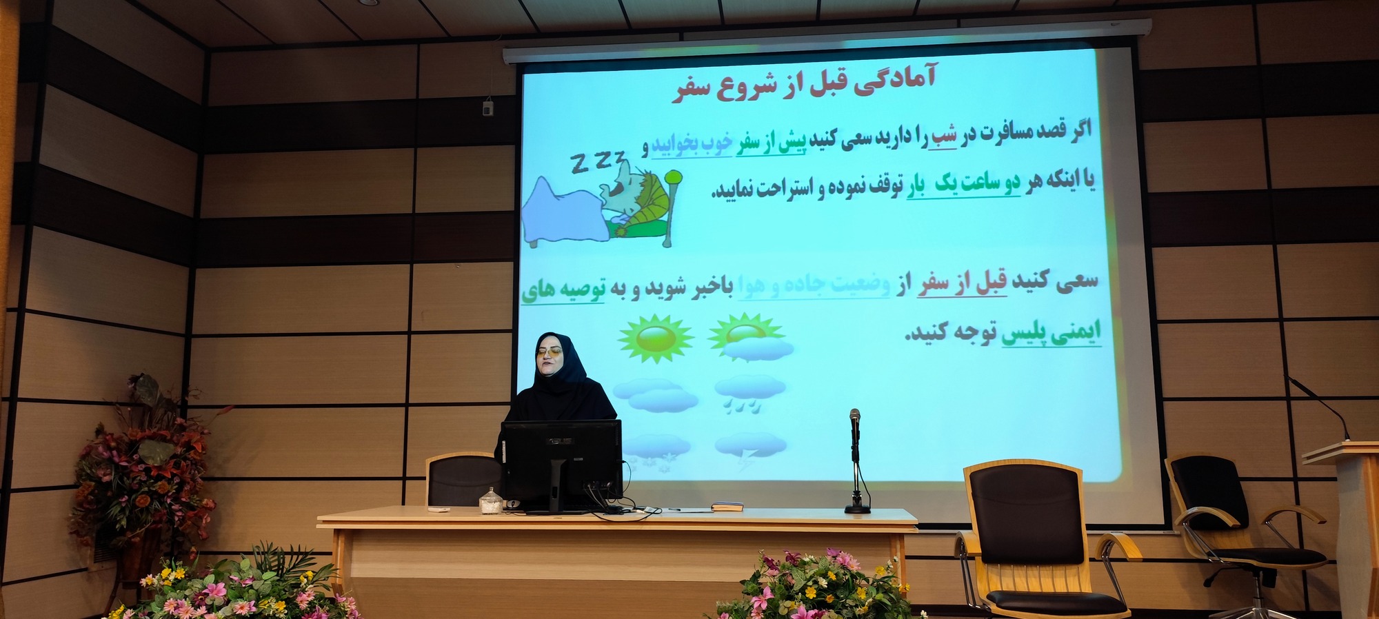 از مهمترین محورهای آموزشی مطرحشده در این کارگاه میتوان به اپیدمیولوژی حوادث ترافیکی در جهان و ایران، علل و عوامل مؤثر بر بروز تصادفات، اصول رانندگی ایمن و رفتار صحیح رانندگی در شرایط خاص و بحرانی اشاره کرد.