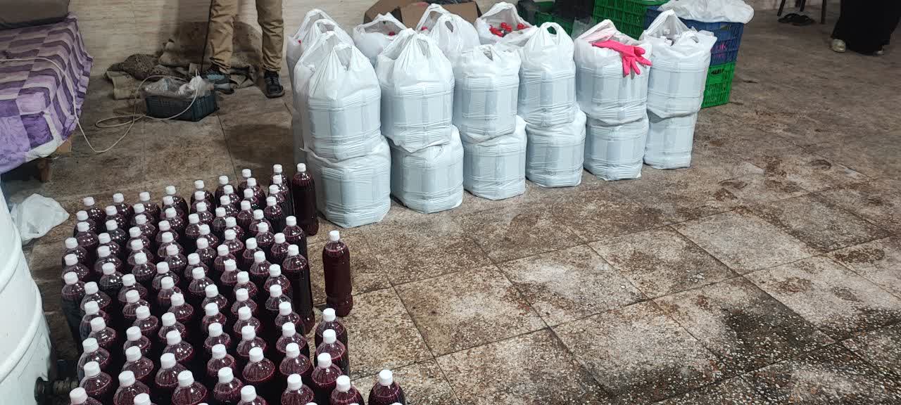 شناسایی و پلمب کارگاه غیرمجاز تولید آبمیوه و معدومسازی ۲۵۰۰ لیتر آبمیوه غیربهداشتی در شهرستان شهریار
